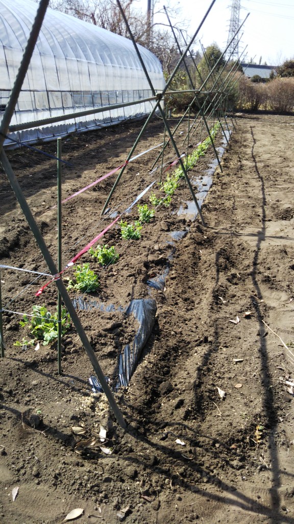 さやえんどう(絹さや)を仕立 「北風よけ」で越冬したさやえんどうが大きくなりだした。もう防寒は必要無い。中耕して支柱を立て、「つる」が掴まりやすいよう誘因紐を張る。因みにハクセキレイなどの小鳥が来て葉っぱを食べてしまうので鳥よけテープも。 共有: X で共有 (新しいウィンドウで開きます) X Facebook で共有 (新しいウィンドウで開きます) Facebook いいね 読み込み中… 関連